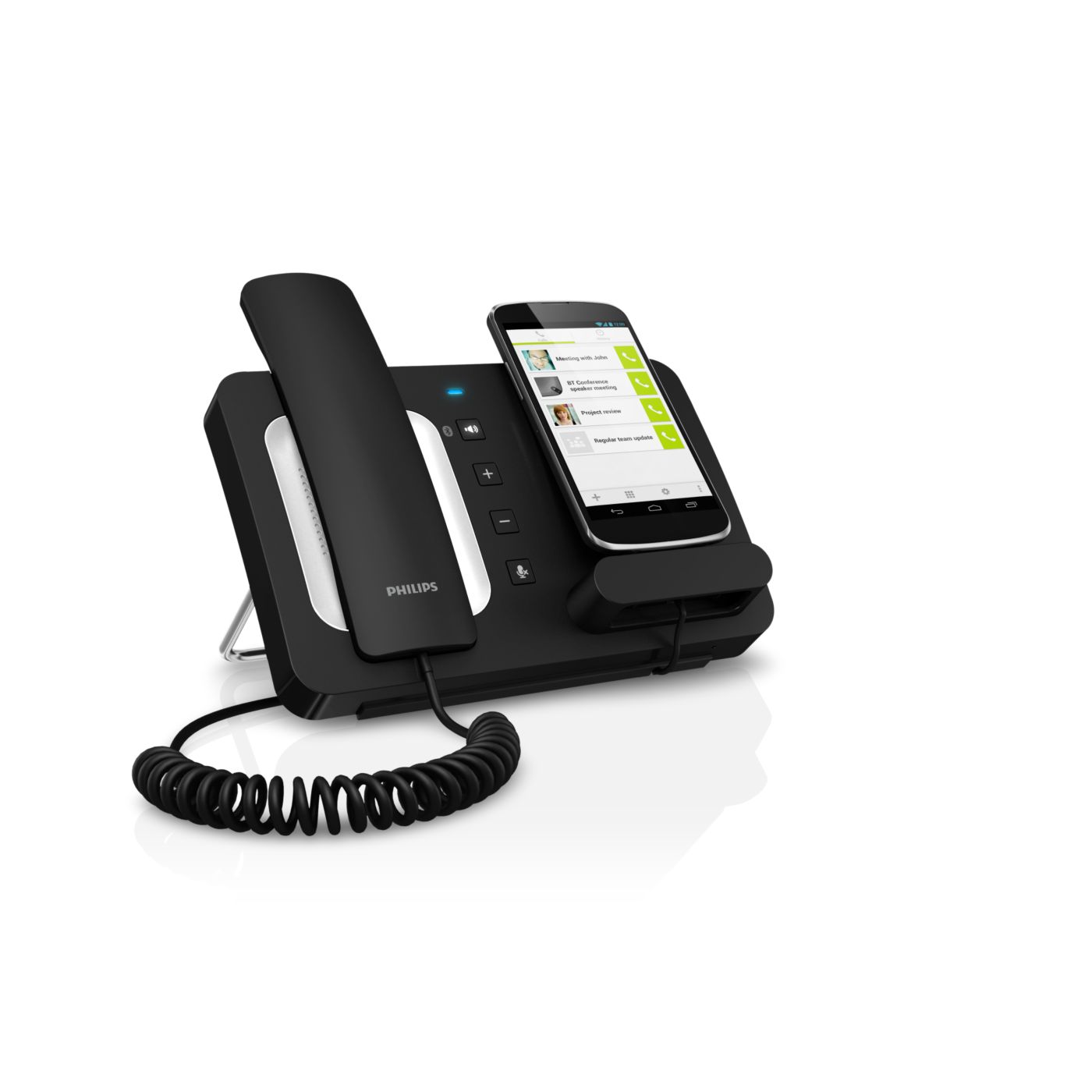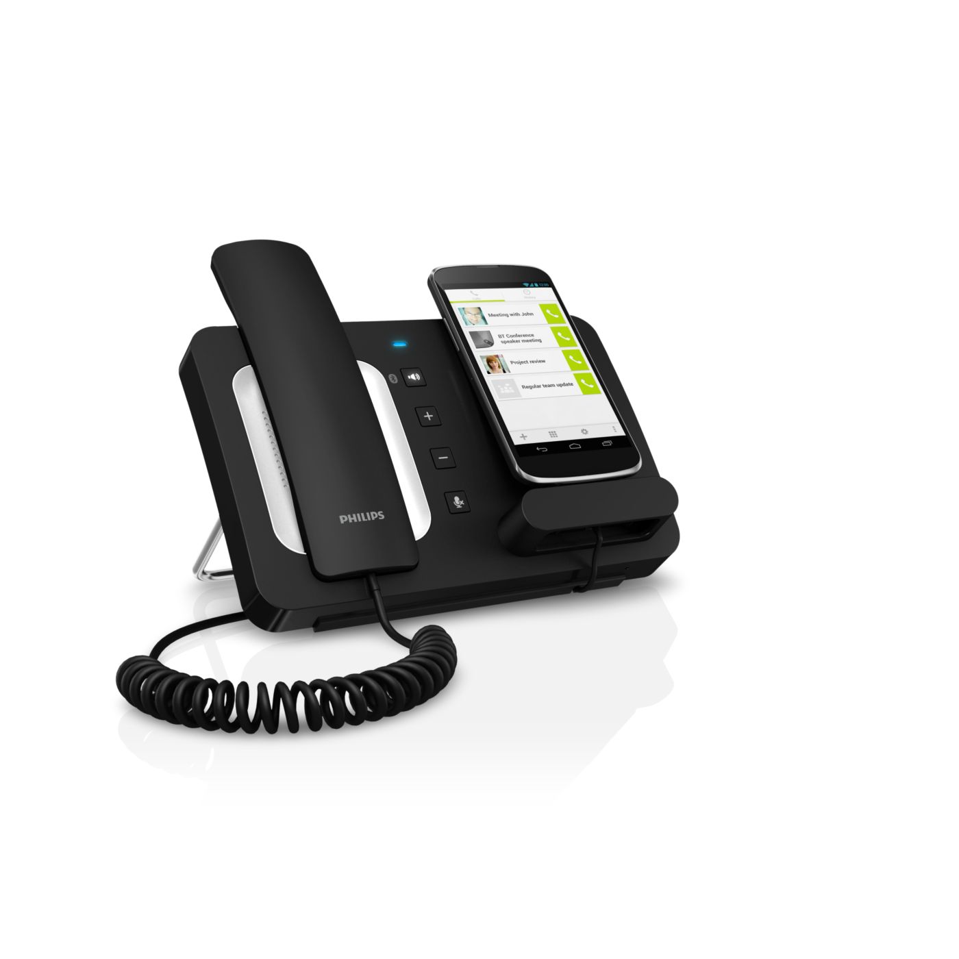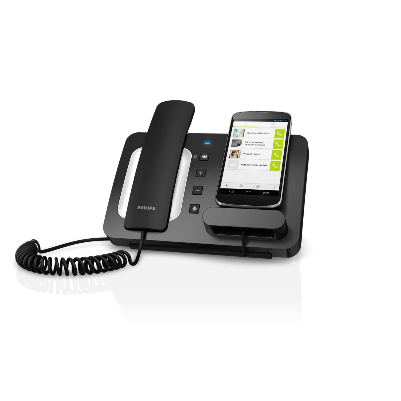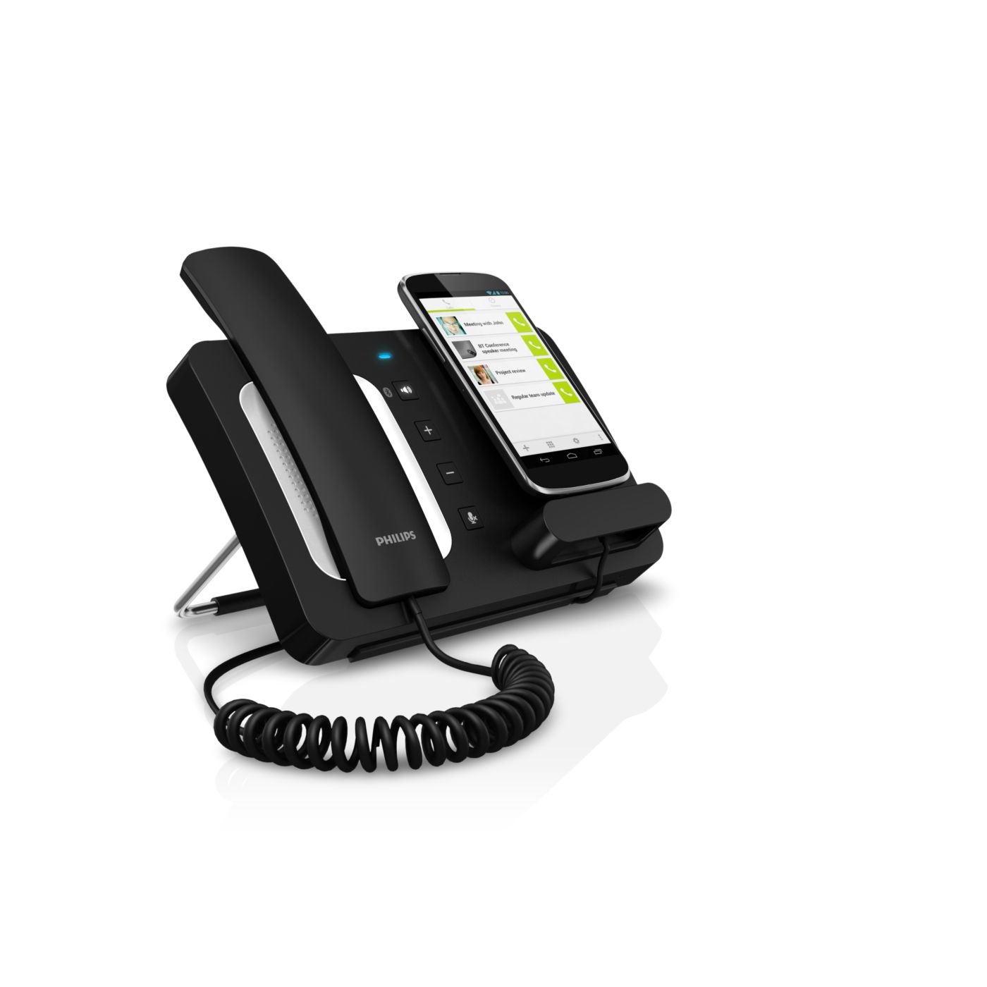 Bluetooth® tehnoloģija savieno pārī WeCall mikrofonu ar skaļruni un viedtālruni, lai piekļūtu visām funkcijām uzlādes laikā. Sarunājieties brīvi - izmantojot klausuli, skaļruni, austiņas - konfidenciāli un brīvroku režīmā. Pievienojiet savu vadu daudzpusīgām uzlādes iespējām.