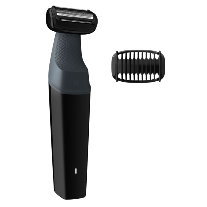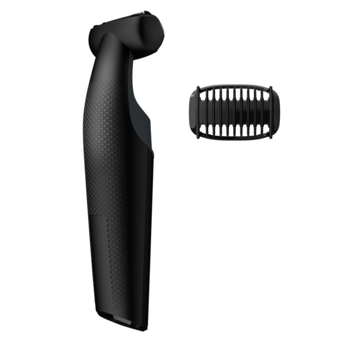 Mitrās un sausās skūšanās ķermeņa skuveklis ir pilnībā ūdensizturīgs, tādēļ varat to izmantot gan dušā, gan ārpus tās, un viegli tīrīt skuvekli. Lai iegūtu labākos rezultātus, izmantojiet ar sausu apmatojumu pirms mazgāšanās.