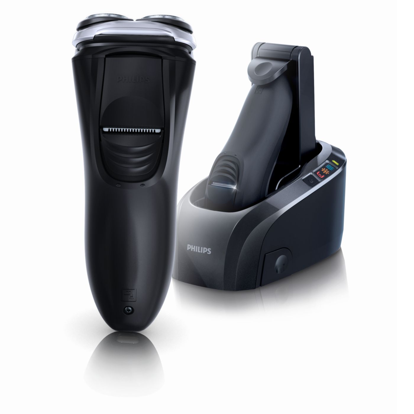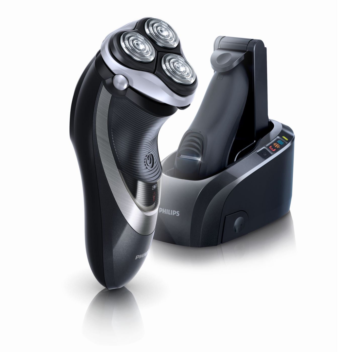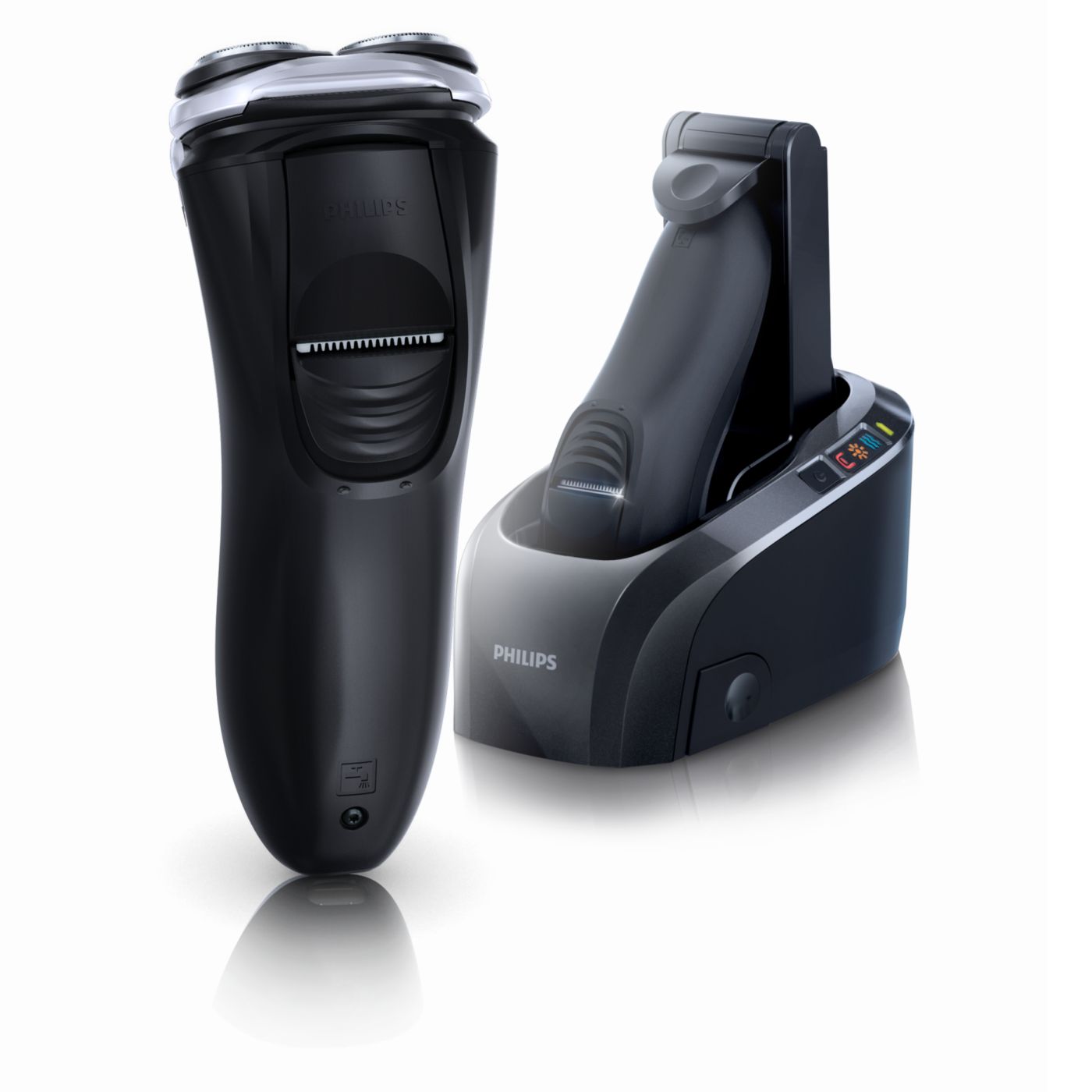 Mūsu elektriskajos skuvekļos iebūvētā dubultā asmens sistēma paceļ matiņus, lai tos ērti nogrieztu zem ādas līmeņa un skuvums būtu gludāks.