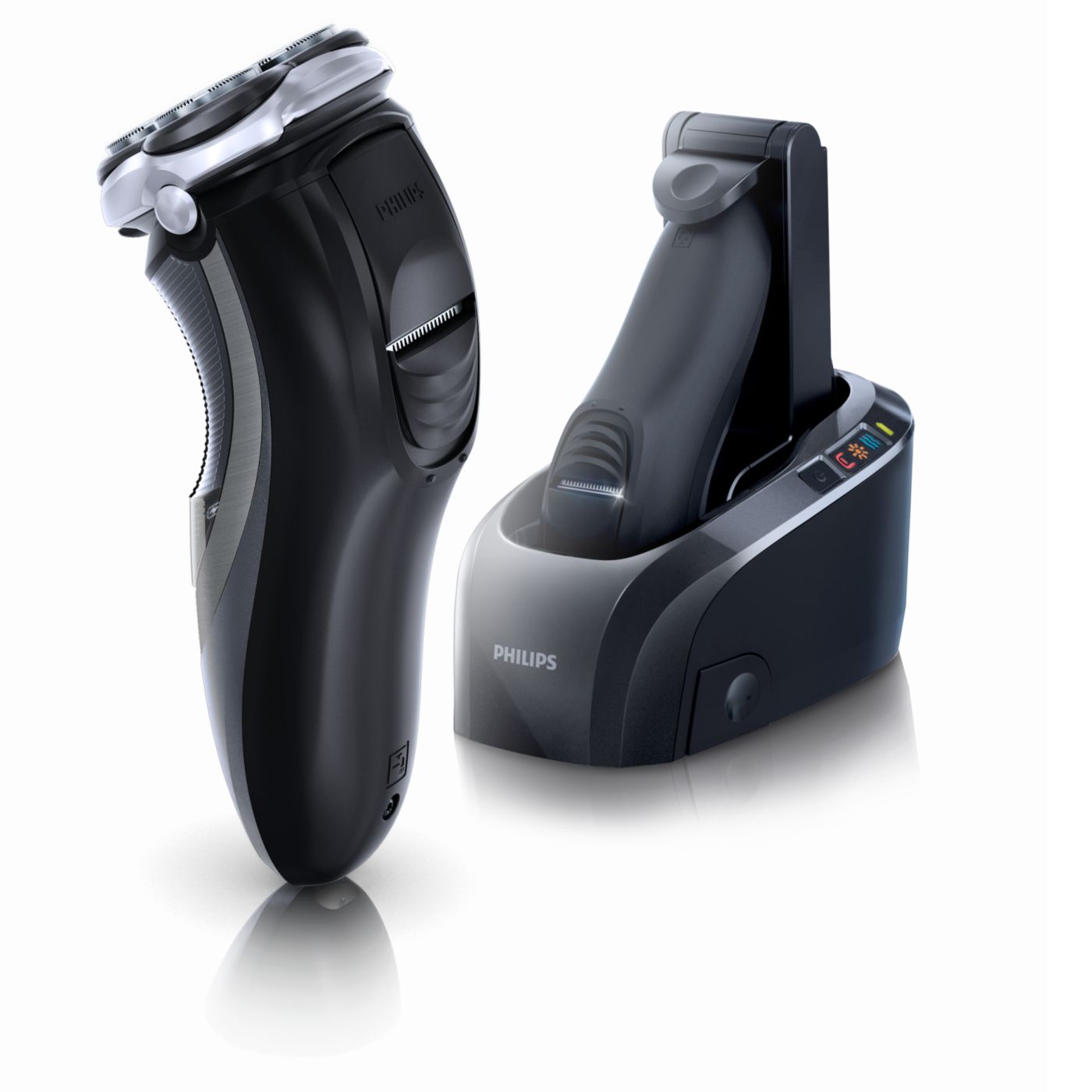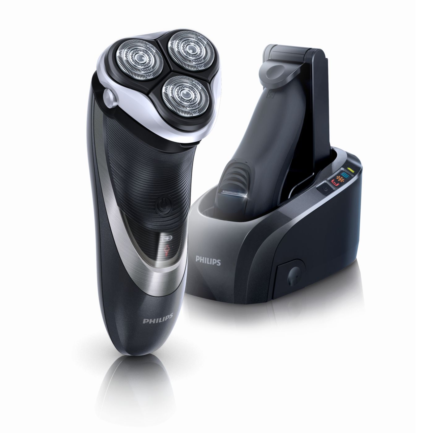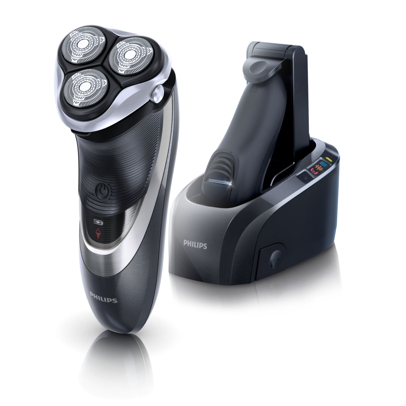 Mūsu elektriskajos skuvekļos iebūvētā dubultā asmens sistēma paceļ matiņus, lai tos ērti nogrieztu zem ādas līmeņa un skuvums būtu gludāks.
