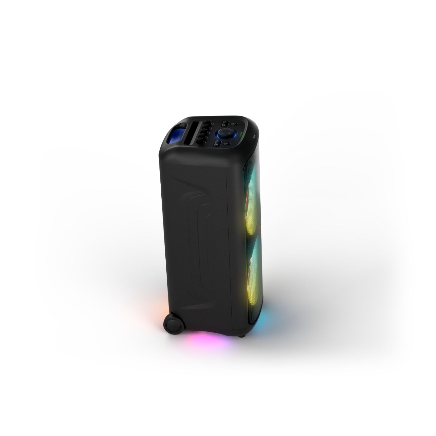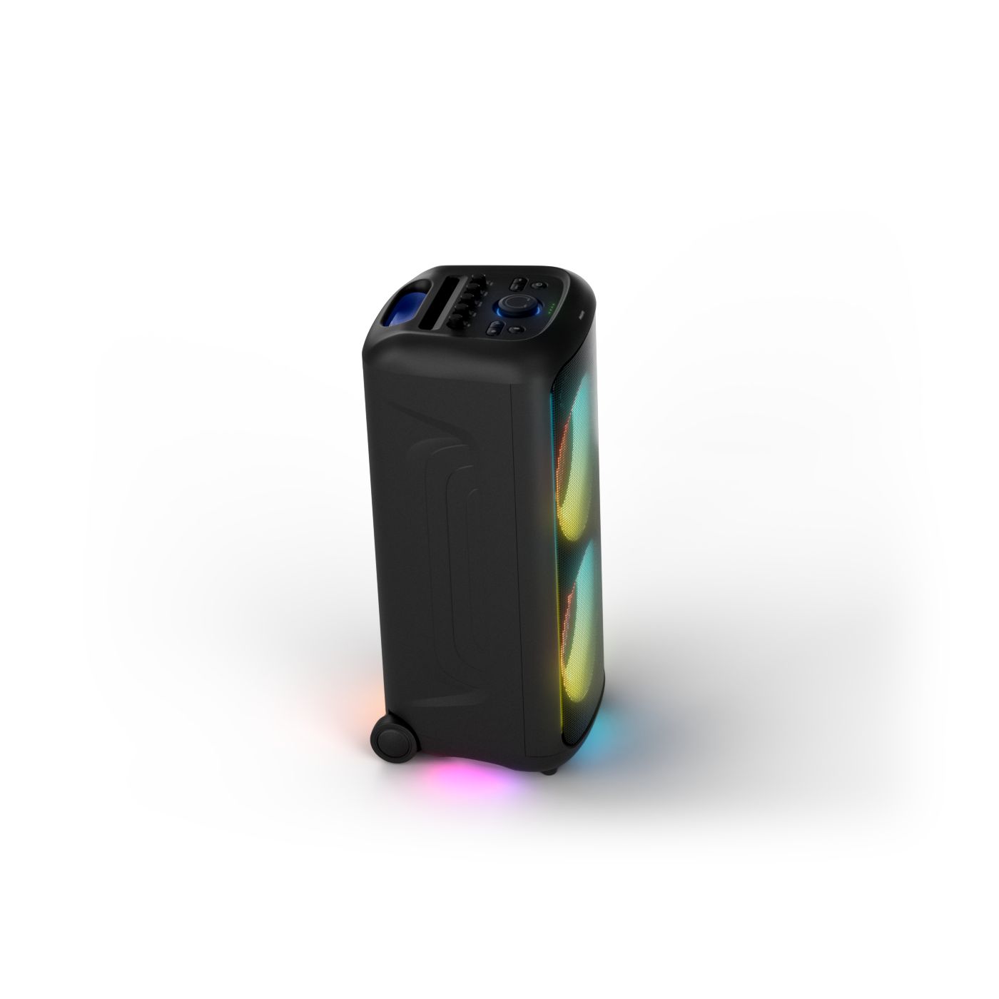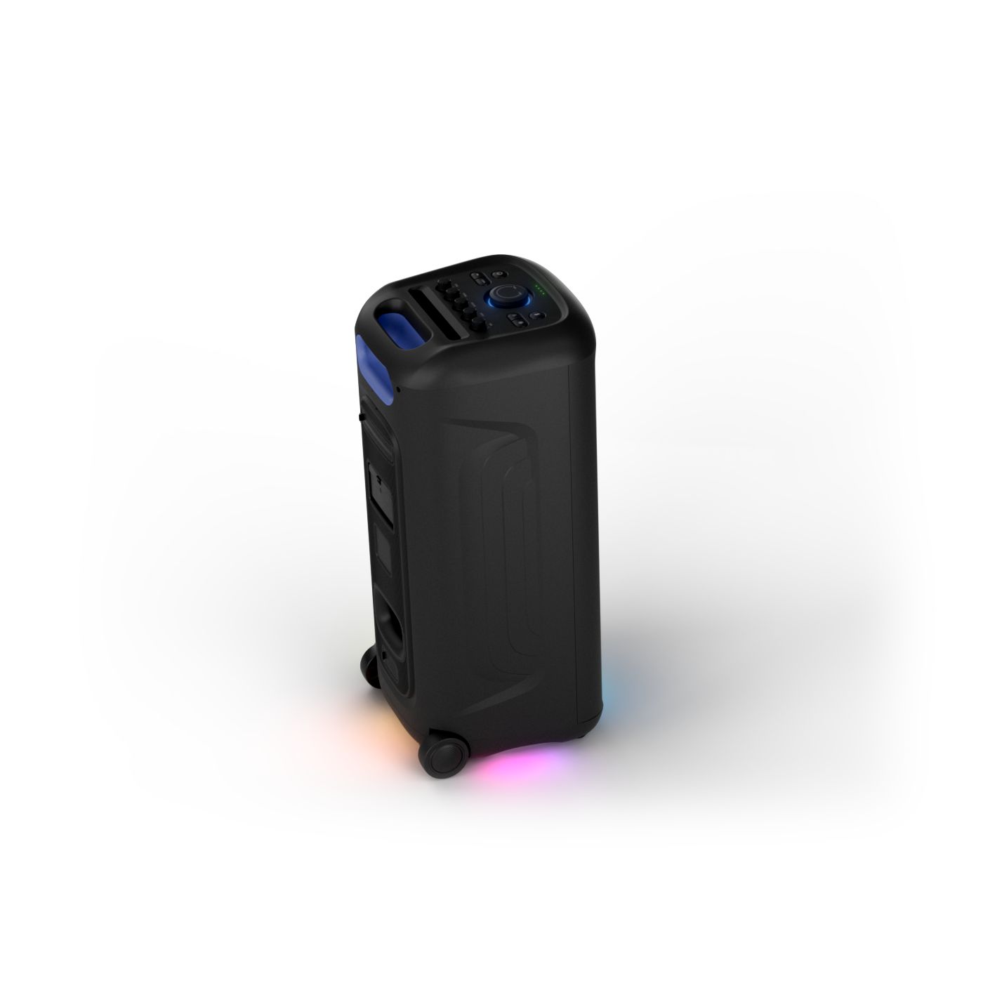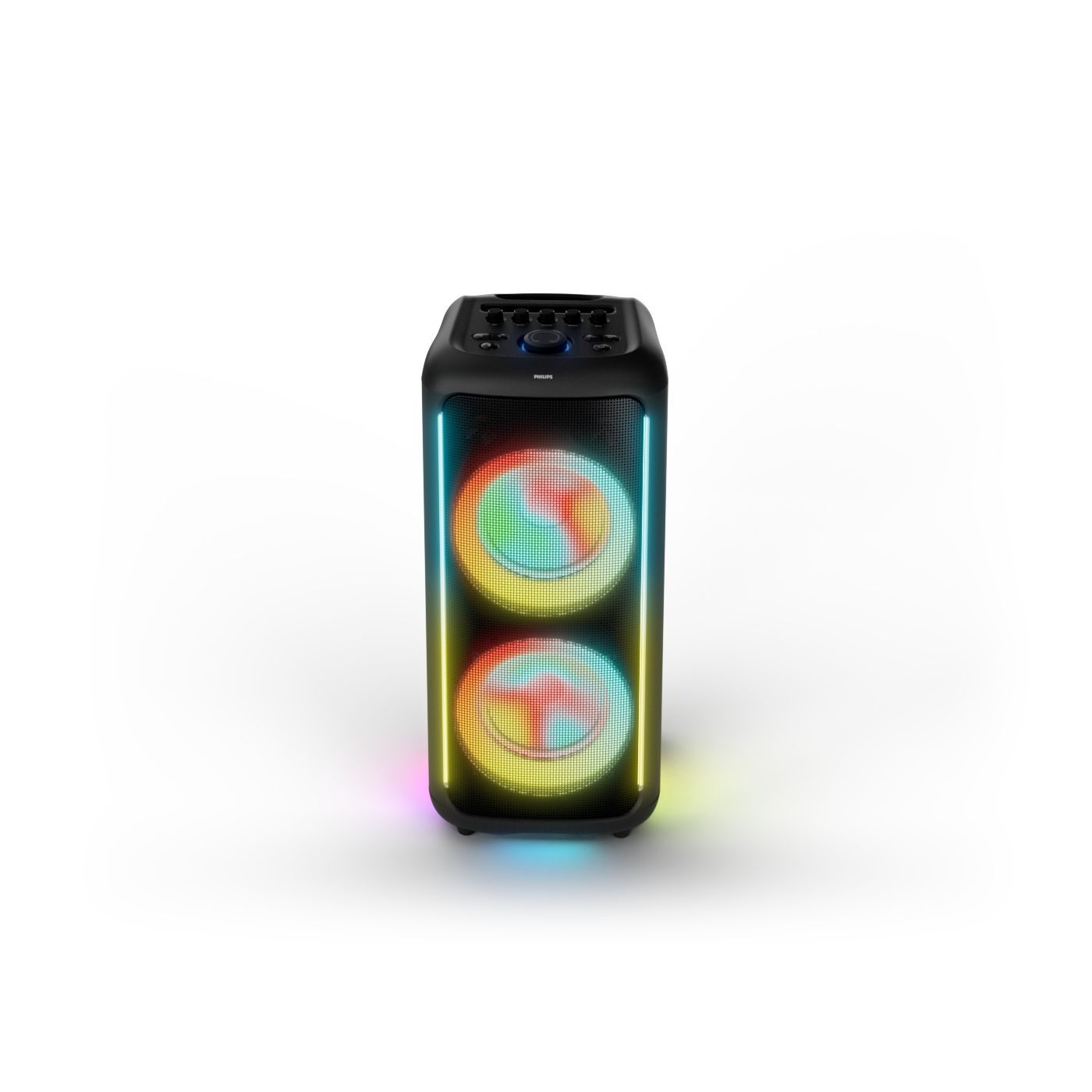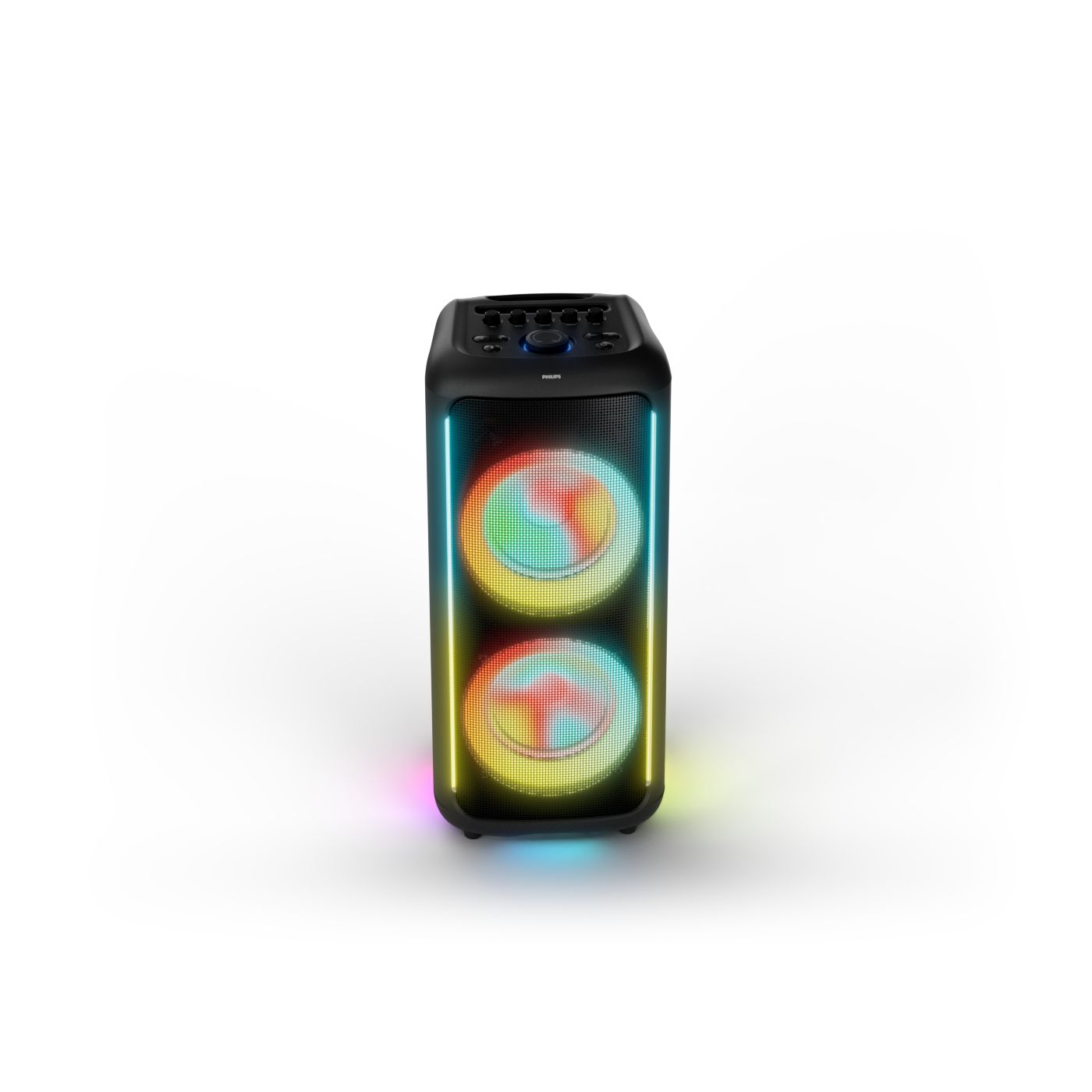 osvětlení má mnoho režimů. Svítí I Dole Vše se dá vypnout.+Nastavení dvou mikrofonu a kytary.A ještě zvlášť extra pro basy. (Extra bass). Velké plus je i vyměnitelná baterie. Kolečka kvalitní pevné. Bluetooth po celém bytě bez problémů. Zvuk v této cenovce bez konkurenční. 2 x 20 cm repro jde opravdu znát ( JBL120 165cm). Zvuk krásný čistý jak výšky tak basy. Do 80% volume naprosto čistý. Basy se dají i přidat extra tlačítkem Reproduktor hraje hutněji a (200watt ) než JBL p box120 za 7000. Silnější výkon a větší reproduktory jdou znát. V této cenové kategorii nejlepší. Philips je přece jen značka s dlouholetou tradicí. Stereo. veškerá elektronika vždy kvalitní. Sám mám stereo 2x50 watt Philips už 10let bez problémů. Po JBL party box 120 je tento Philips nejlepší volba. Zkoušel jsem LG v této cenové kategorii.do 5000 LG X-boom XL 5s srovnatelné zvukově ale horší osvětlení led, baterie nejde vyměnit, stará verze Bluetooth. Celkově jde znát že je LG už 4 roky