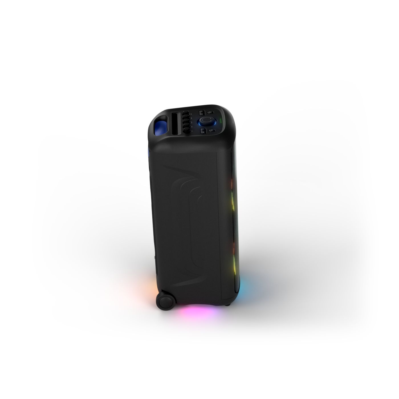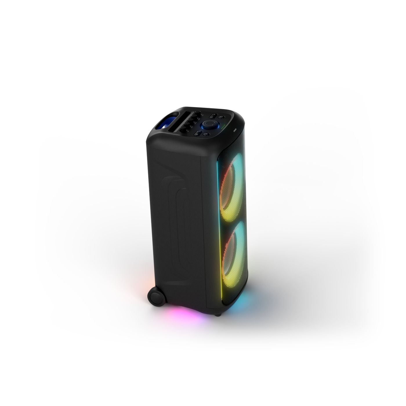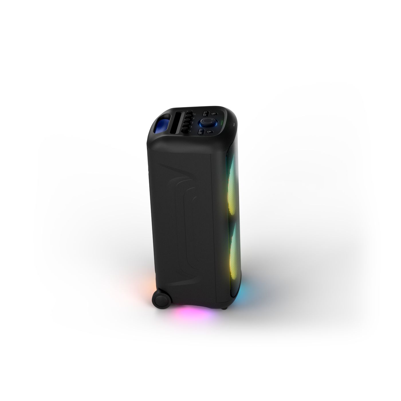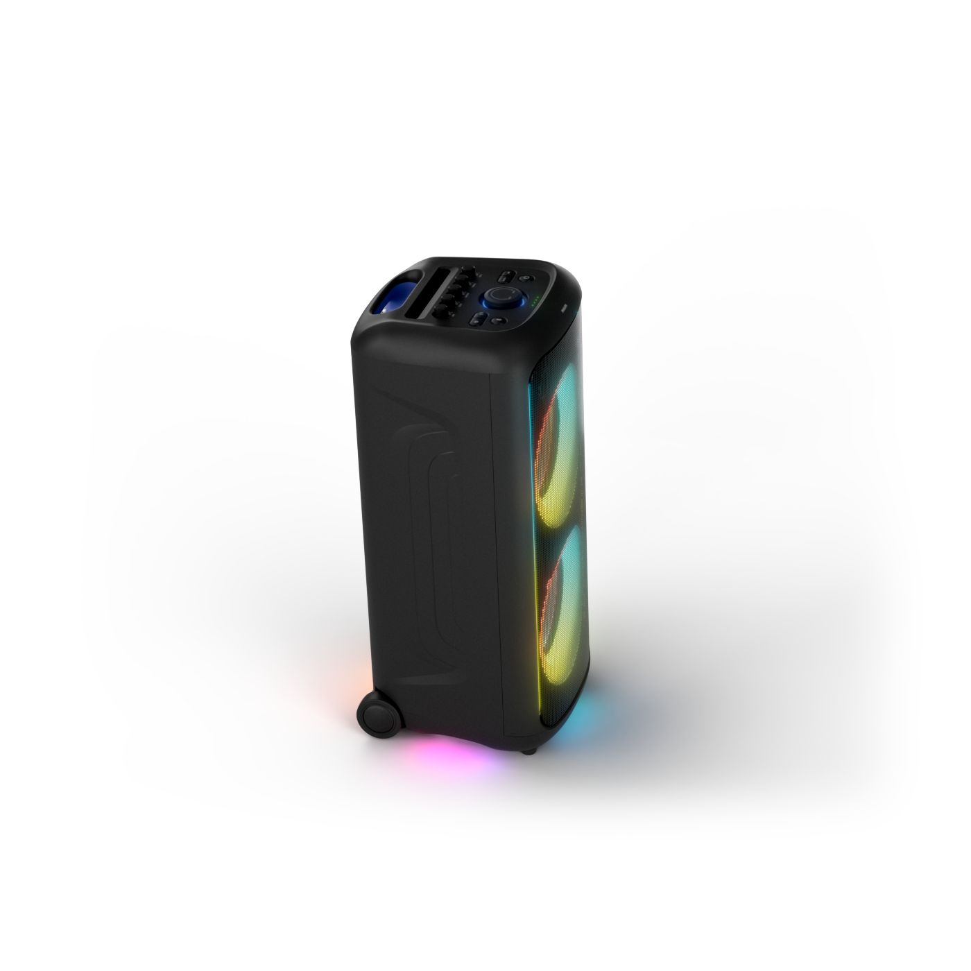 osvětlení má mnoho režimů. Svítí I Dole Vše se dá vypnout.+Nastavení dvou mikrofonu a kytary.A ještě zvlášť extra pro basy. (Extra bass). Velké plus je i vyměnitelná baterie. Kolečka kvalitní pevné. Bluetooth po celém bytě bez problémů. Zvuk v této cenovce bez konkurenční. 2 x 20 cm repro jde opravdu znát ( JBL120 165cm). Zvuk krásný čistý jak výšky tak basy. Do 80% volume naprosto čistý. Basy se dají i přidat extra tlačítkem Reproduktor hraje hutněji a (200watt ) než JBL p box120 za 7000. Silnější výkon a větší reproduktory jdou znát. V této cenové kategorii nejlepší. Philips je přece jen značka s dlouholetou tradicí. Stereo. veškerá elektronika vždy kvalitní. Sám mám stereo 2x50 watt Philips už 10let bez problémů. Po JBL party box 120 je tento Philips nejlepší volba. Zkoušel jsem LG v této cenové kategorii.do 5000 LG X-boom XL 5s srovnatelné zvukově ale horší osvětlení led, baterie nejde vyměnit, stará verze Bluetooth. Celkově jde znát že je LG už 4 roky