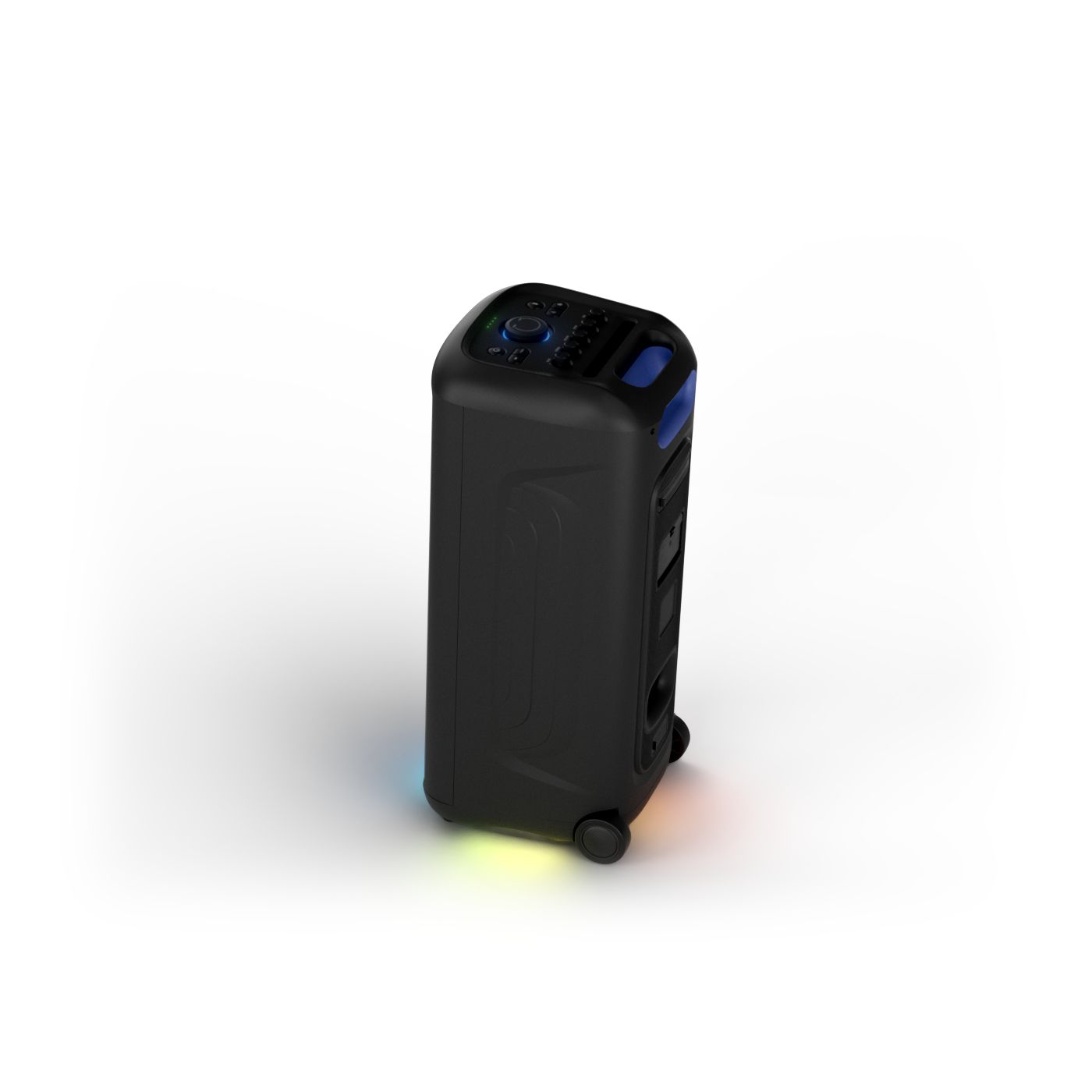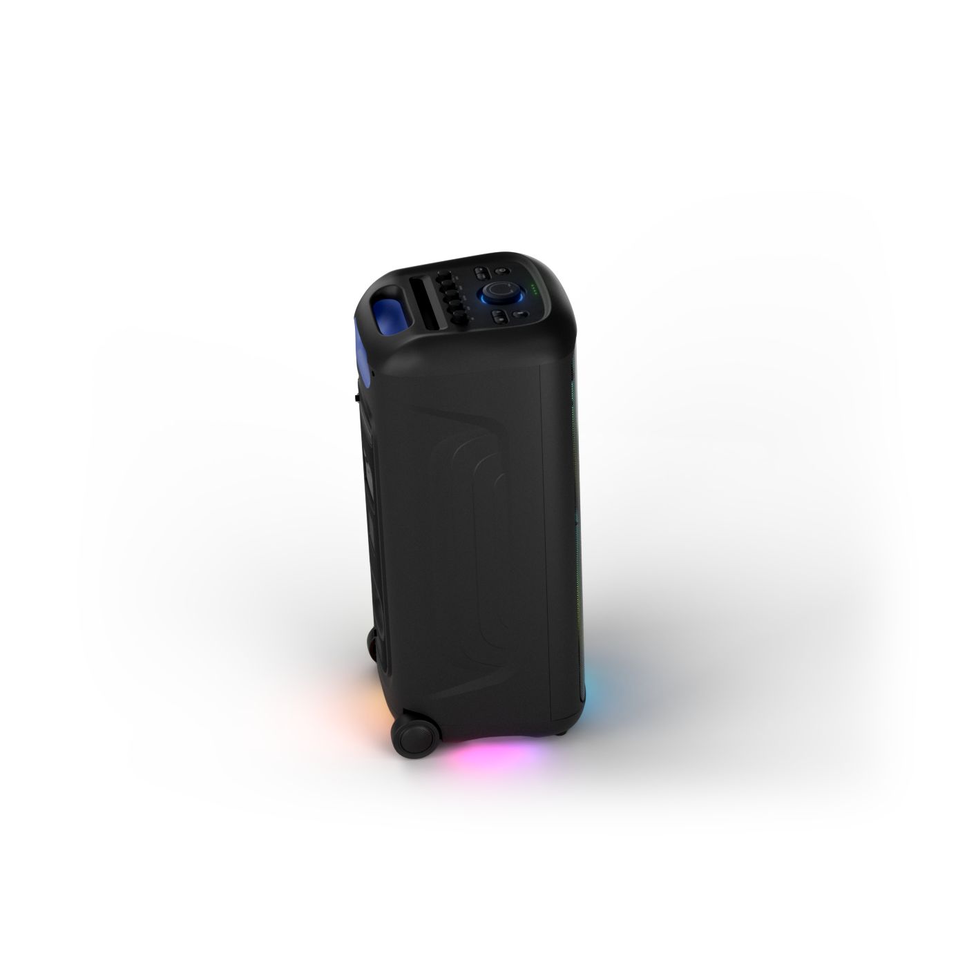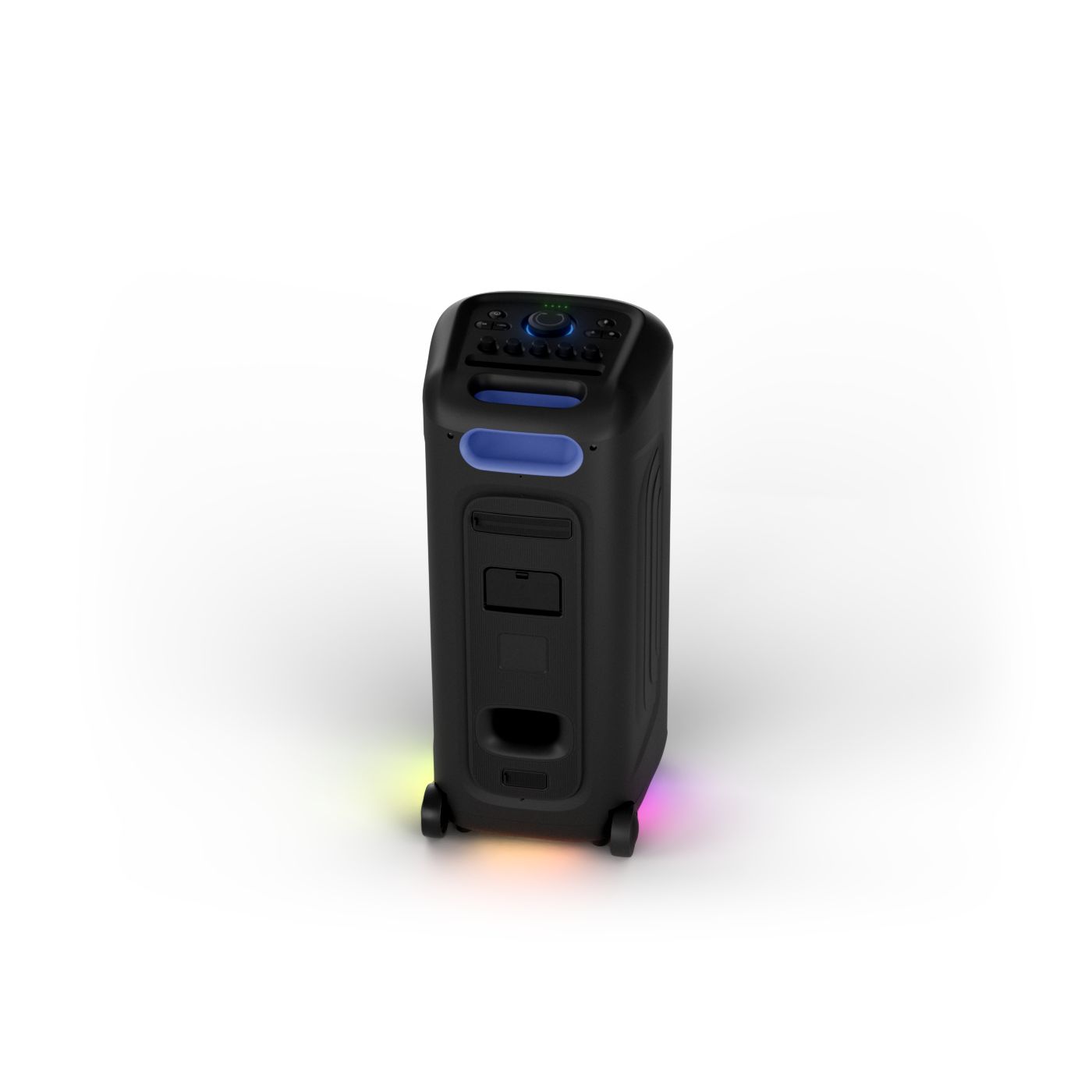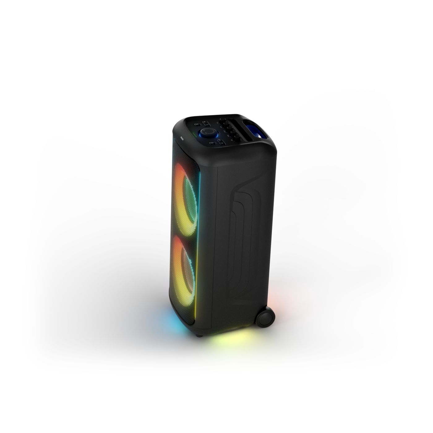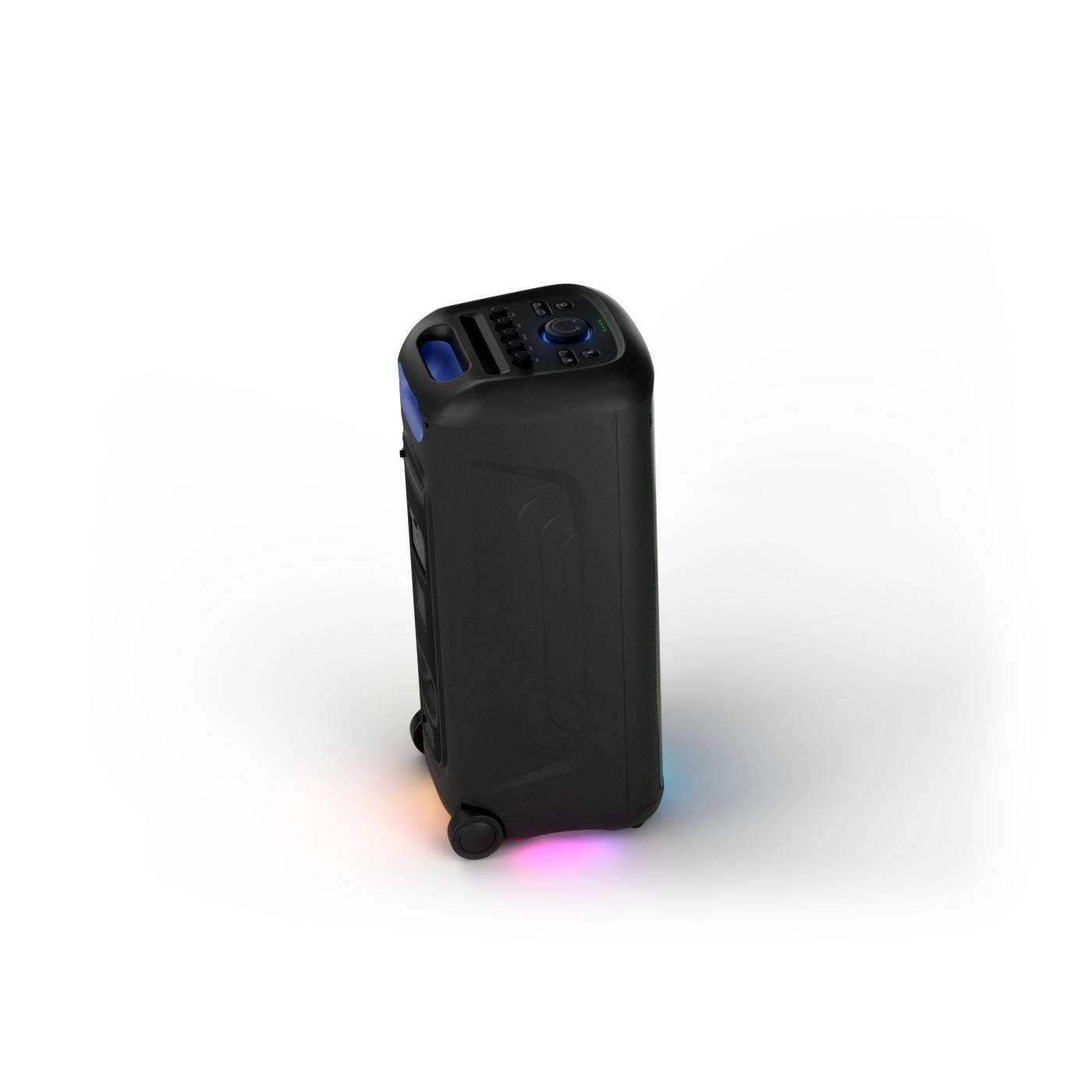 osvětlení má mnoho režimů. Svítí I Dole Vše se dá vypnout.+Nastavení dvou mikrofonu a kytary.A ještě zvlášť extra pro basy. (Extra bass). Velké plus je i vyměnitelná baterie. Kolečka kvalitní pevné. Bluetooth po celém bytě bez problémů. Zvuk v této cenovce bez konkurenční. 2 x 20 cm repro jde opravdu znát ( JBL120 165cm). Zvuk krásný čistý jak výšky tak basy. Do 80% volume naprosto čistý. Basy se dají i přidat extra tlačítkem Reproduktor hraje hutněji a (200watt ) než JBL p box120 za 7000. Silnější výkon a větší reproduktory jdou znát. V této cenové kategorii nejlepší. Philips je přece jen značka s dlouholetou tradicí. Stereo. veškerá elektronika vždy kvalitní. Sám mám stereo 2x50 watt Philips už 10let bez problémů. Po JBL party box 120 je tento Philips nejlepší volba. Zkoušel jsem LG v této cenové kategorii.do 5000 LG X-boom XL 5s srovnatelné zvukově ale horší osvětlení led, baterie nejde vyměnit, stará verze Bluetooth. Celkově jde znát že je LG už 4 roky