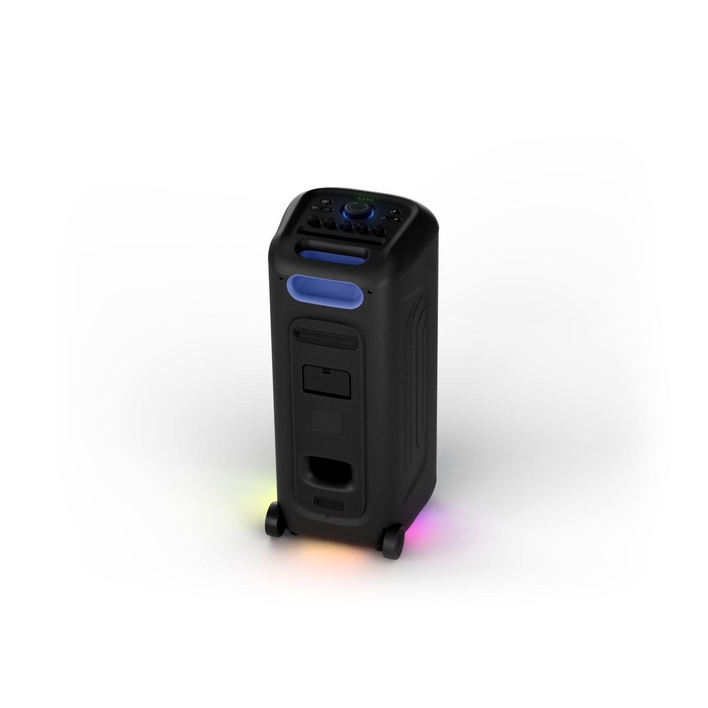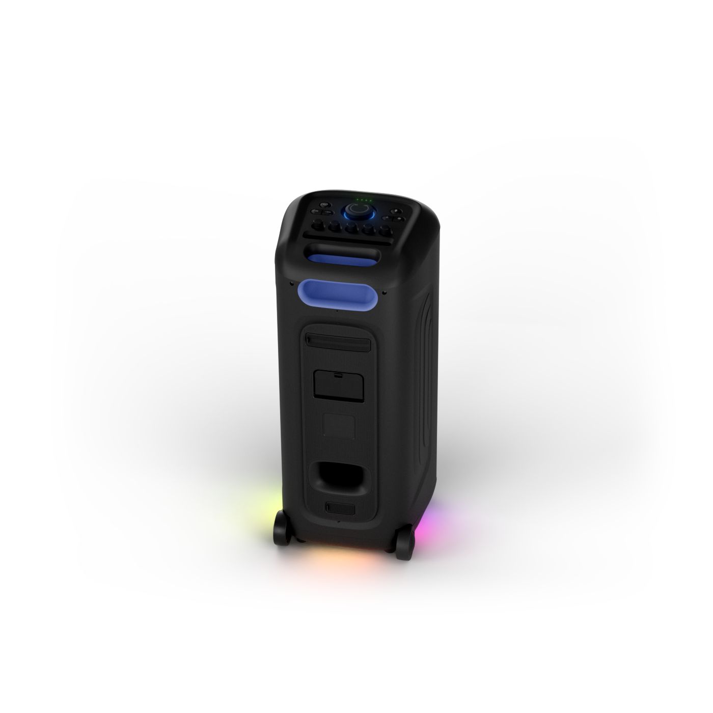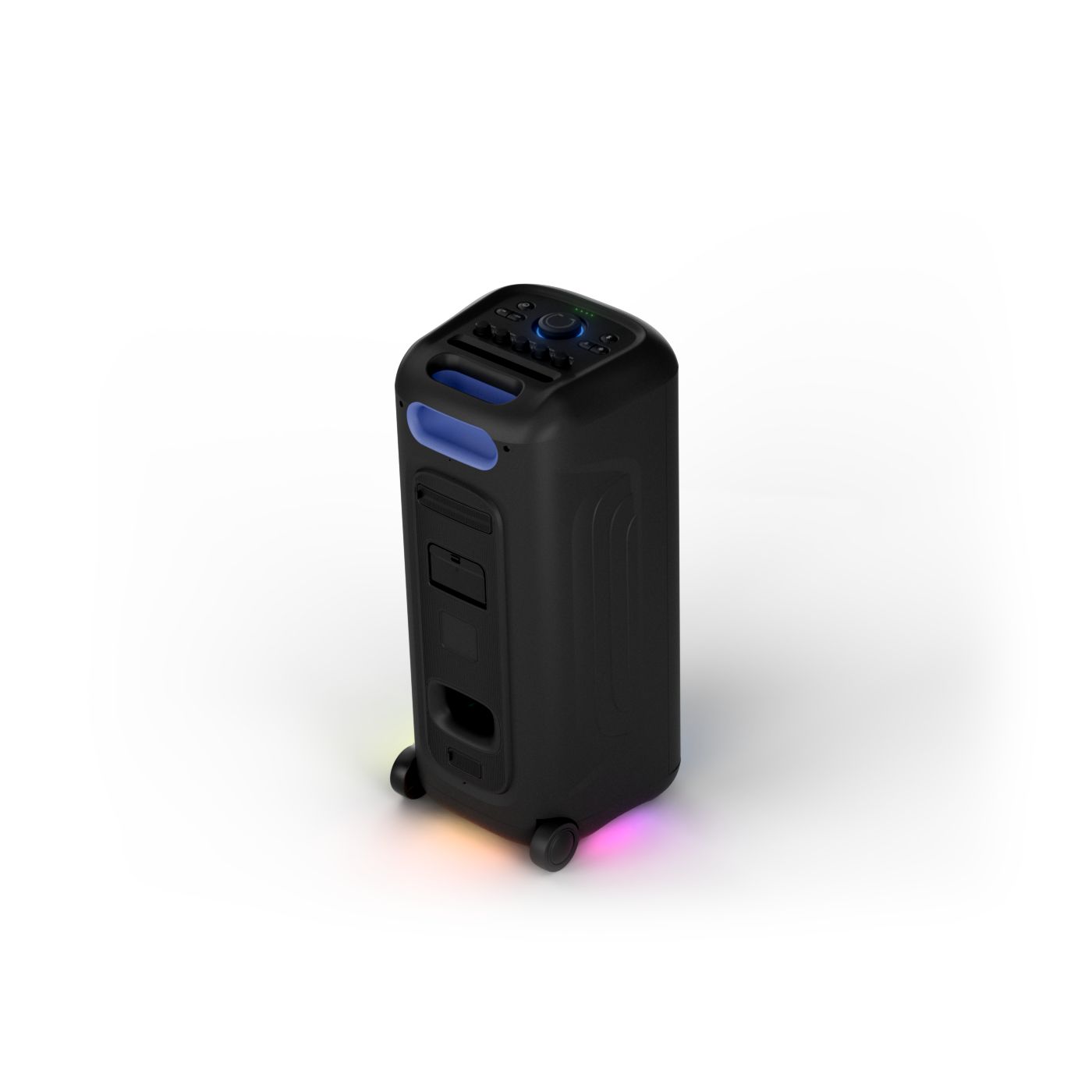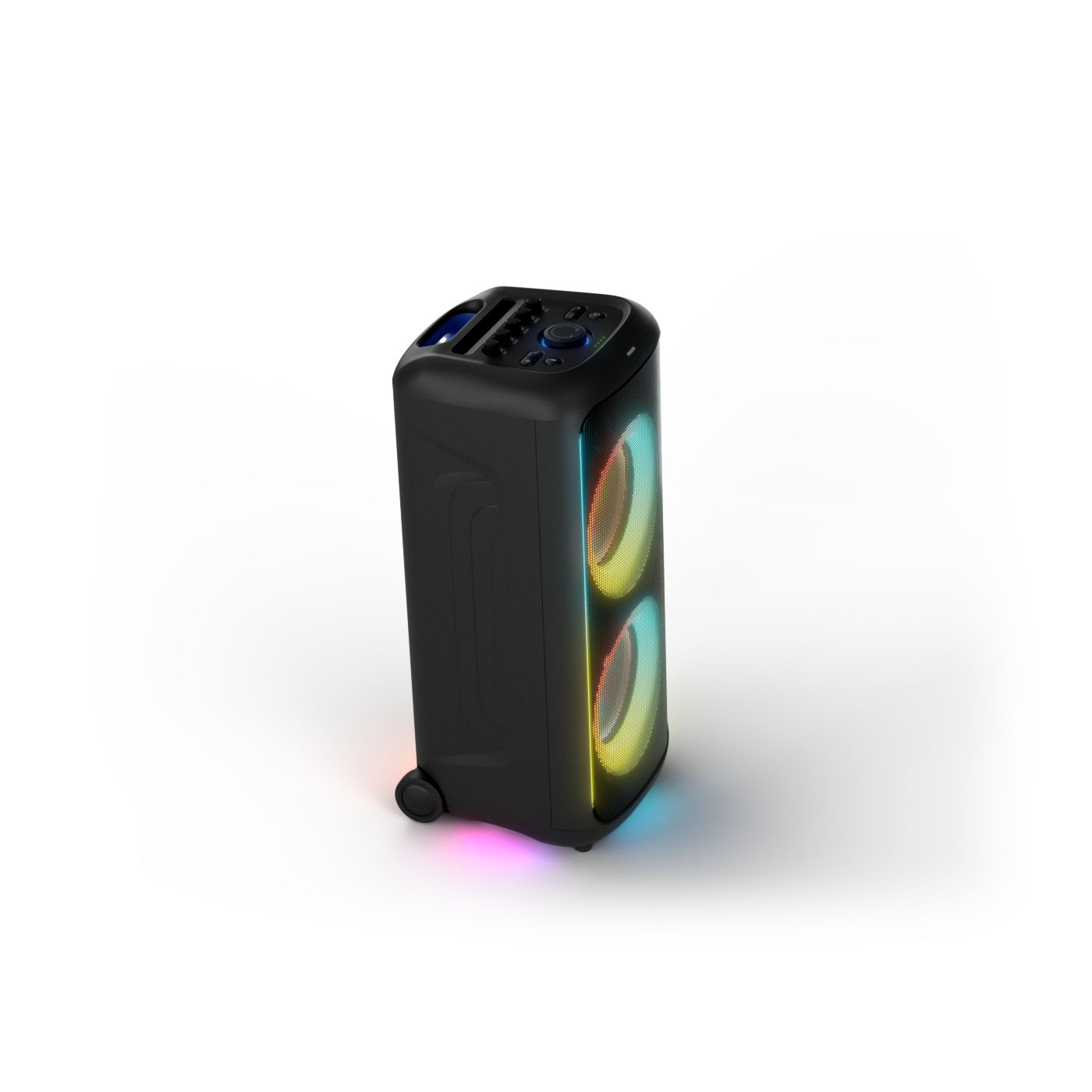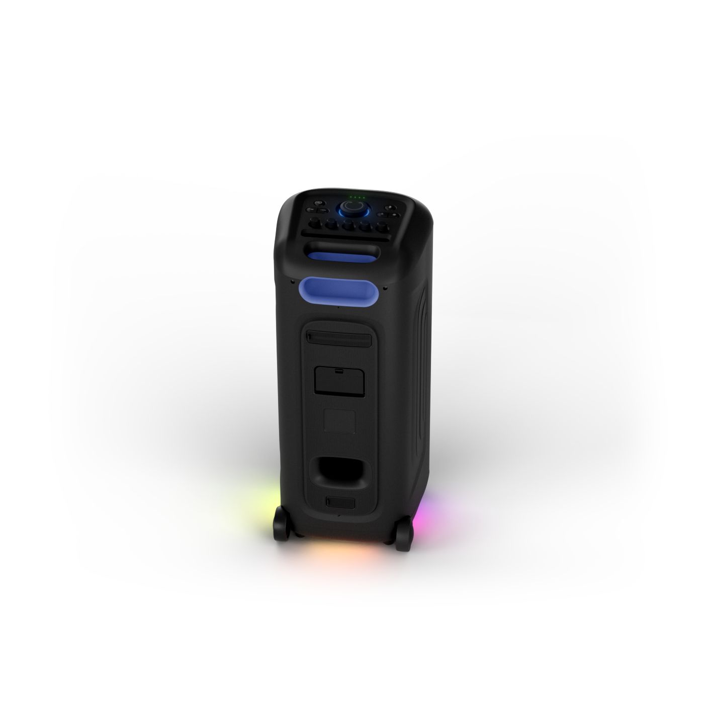 osvětlení má mnoho režimů. Svítí I Dole Vše se dá vypnout.+Nastavení dvou mikrofonu a kytary.A ještě zvlášť extra pro basy. (Extra bass). Velké plus je i vyměnitelná baterie. Kolečka kvalitní pevné. Bluetooth po celém bytě bez problémů. Zvuk v této cenovce bez konkurenční. 2 x 20 cm repro jde opravdu znát ( JBL120 165cm). Zvuk krásný čistý jak výšky tak basy. Do 80% volume naprosto čistý. Basy se dají i přidat extra tlačítkem Reproduktor hraje hutněji a (200watt ) než JBL p box120 za 7000. Silnější výkon a větší reproduktory jdou znát. V této cenové kategorii nejlepší. Philips je přece jen značka s dlouholetou tradicí. Stereo. veškerá elektronika vždy kvalitní. Sám mám stereo 2x50 watt Philips už 10let bez problémů. Po JBL party box 120 je tento Philips nejlepší volba. Zkoušel jsem LG v této cenové kategorii.do 5000 LG X-boom XL 5s srovnatelné zvukově ale horší osvětlení led, baterie nejde vyměnit, stará verze Bluetooth. Celkově jde znát že je LG už 4 roky