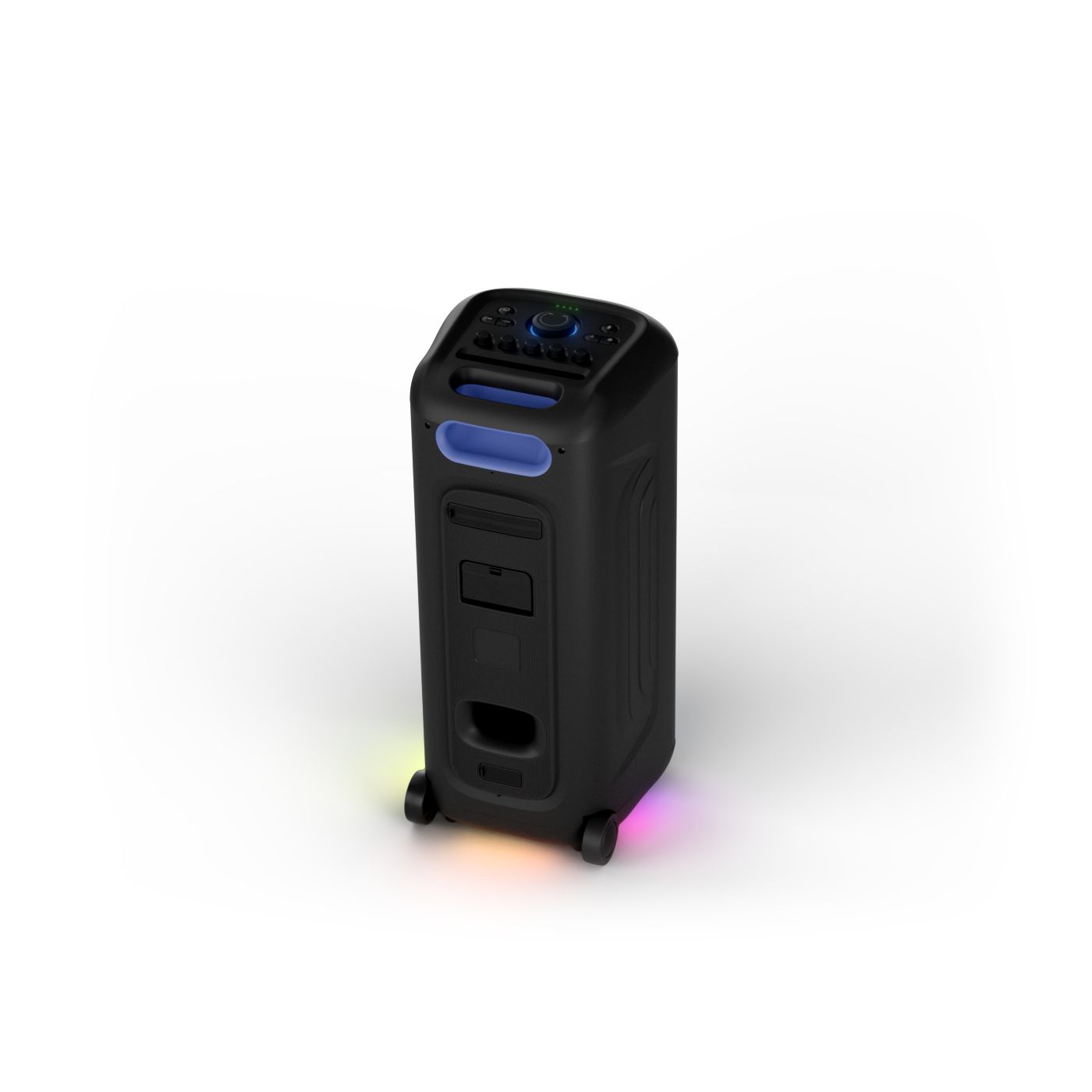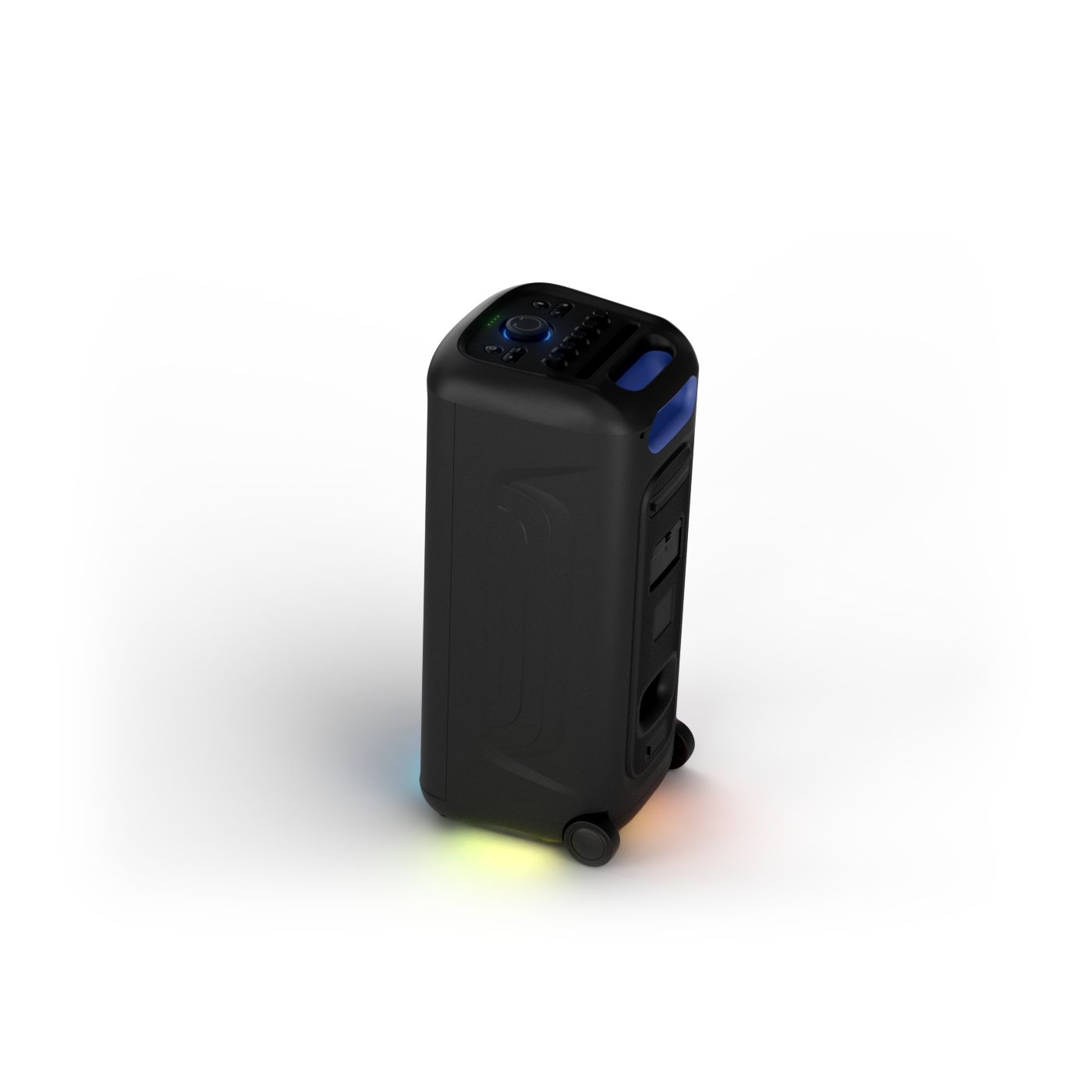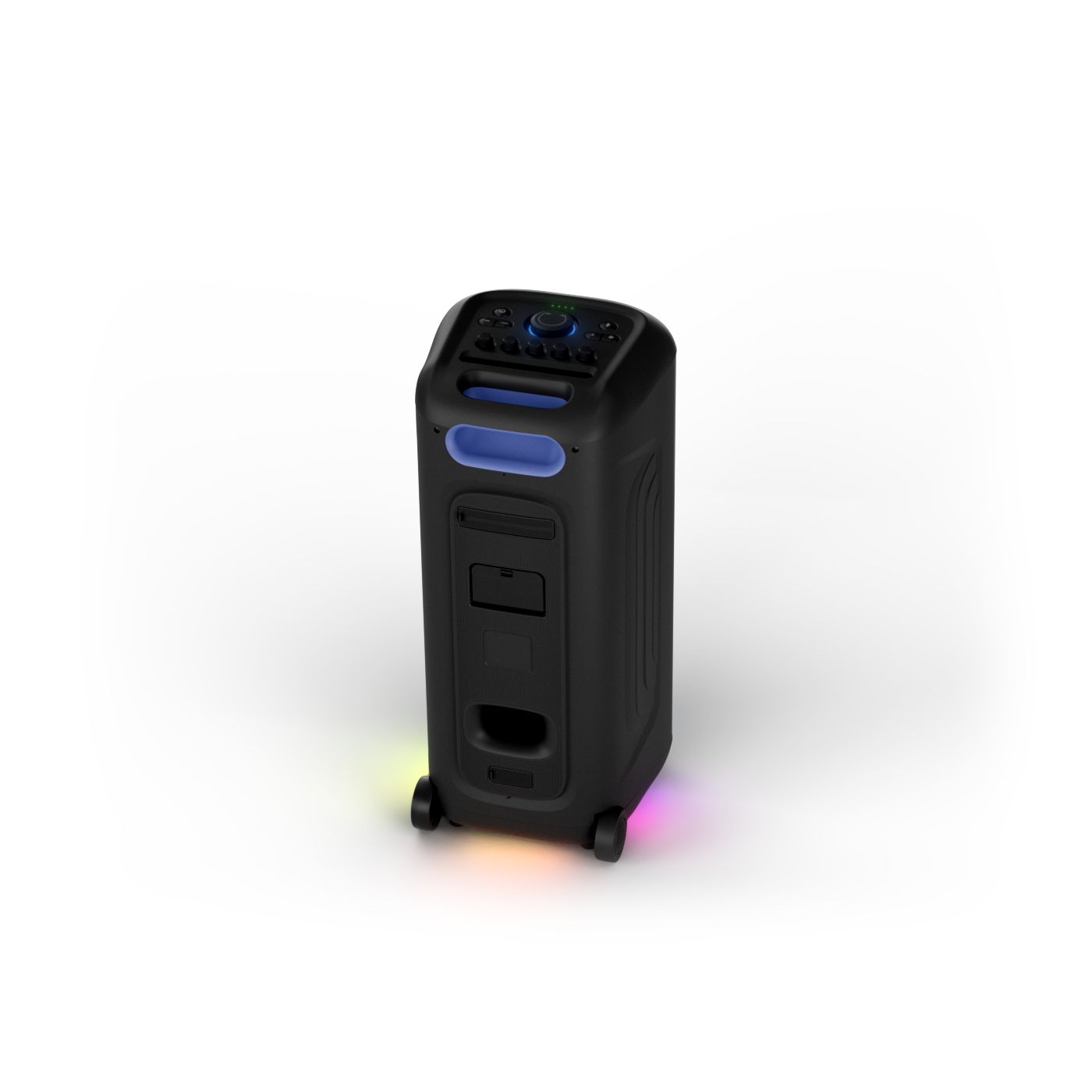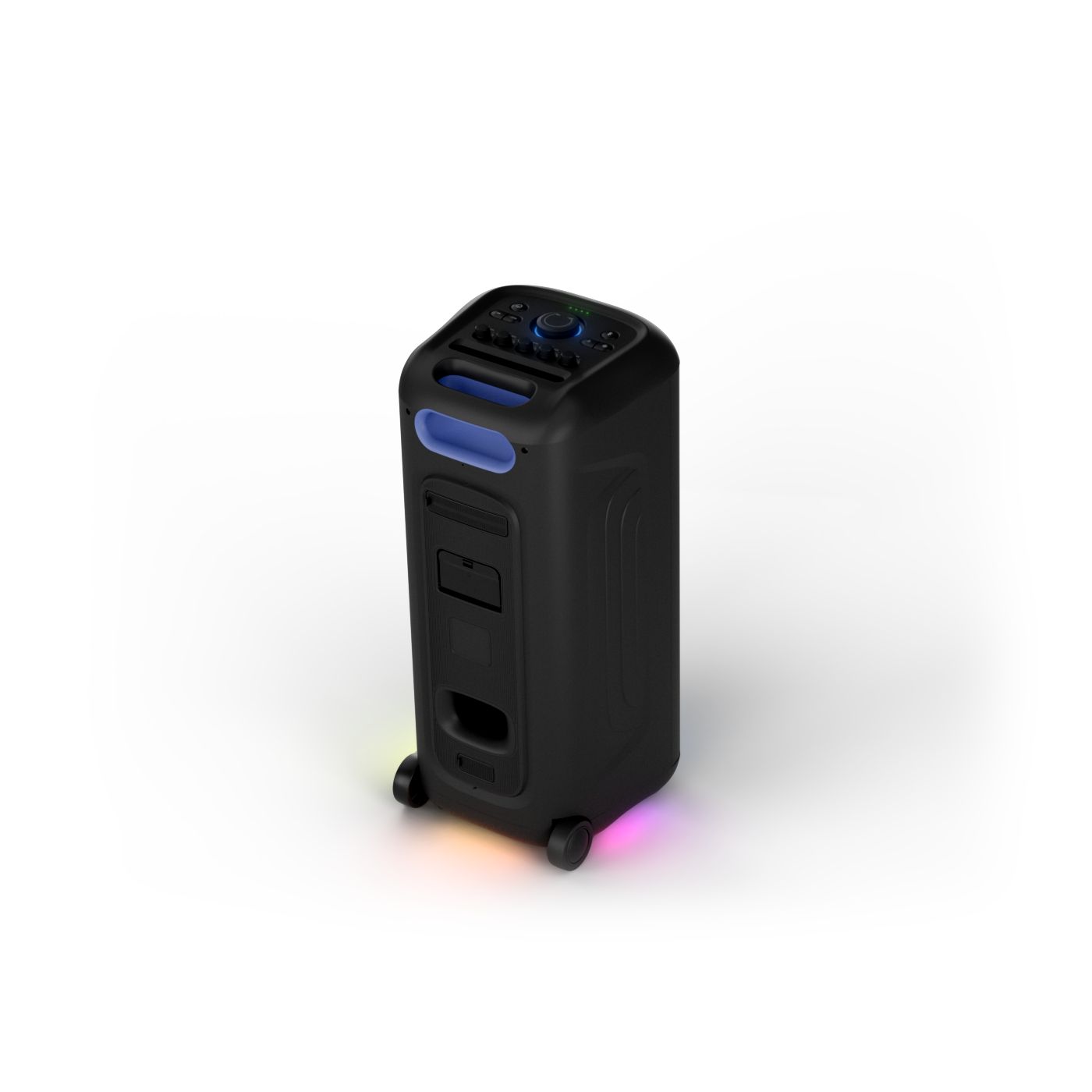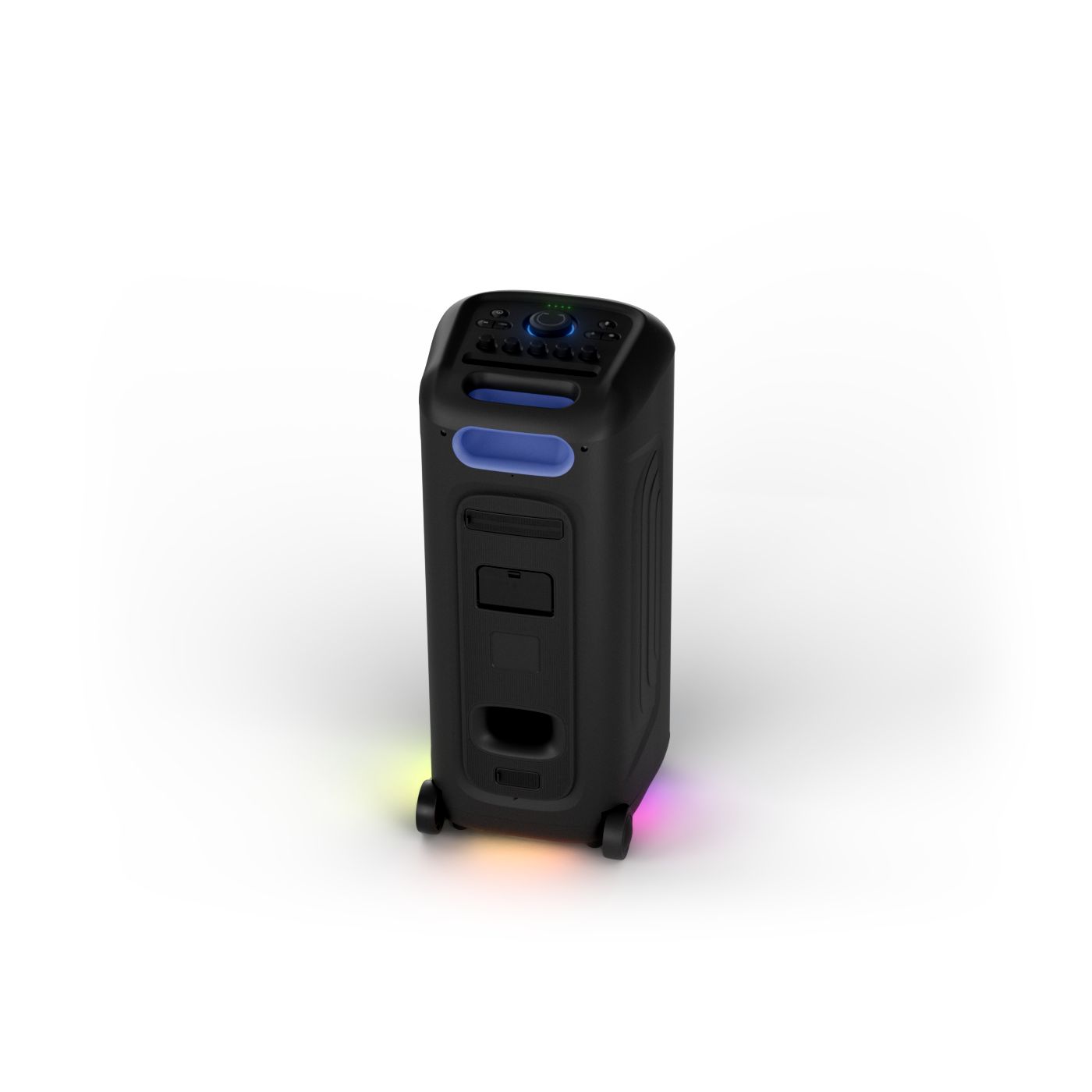 osvětlení má mnoho režimů. Svítí I Dole Vše se dá vypnout.+Nastavení dvou mikrofonu a kytary.A ještě zvlášť extra pro basy. (Extra bass). Velké plus je i vyměnitelná baterie. Kolečka kvalitní pevné. Bluetooth po celém bytě bez problémů. Zvuk v této cenovce bez konkurenční. 2 x 20 cm repro jde opravdu znát ( JBL120 165cm). Zvuk krásný čistý jak výšky tak basy. Do 80% volume naprosto čistý. Basy se dají i přidat extra tlačítkem Reproduktor hraje hutněji a (200watt ) než JBL p box120 za 7000. Silnější výkon a větší reproduktory jdou znát. V této cenové kategorii nejlepší. Philips je přece jen značka s dlouholetou tradicí. Stereo. veškerá elektronika vždy kvalitní. Sám mám stereo 2x50 watt Philips už 10let bez problémů. Po JBL party box 120 je tento Philips nejlepší volba. Zkoušel jsem LG v této cenové kategorii.do 5000 LG X-boom XL 5s srovnatelné zvukově ale horší osvětlení led, baterie nejde vyměnit, stará verze Bluetooth. Celkově jde znát že je LG už 4 roky