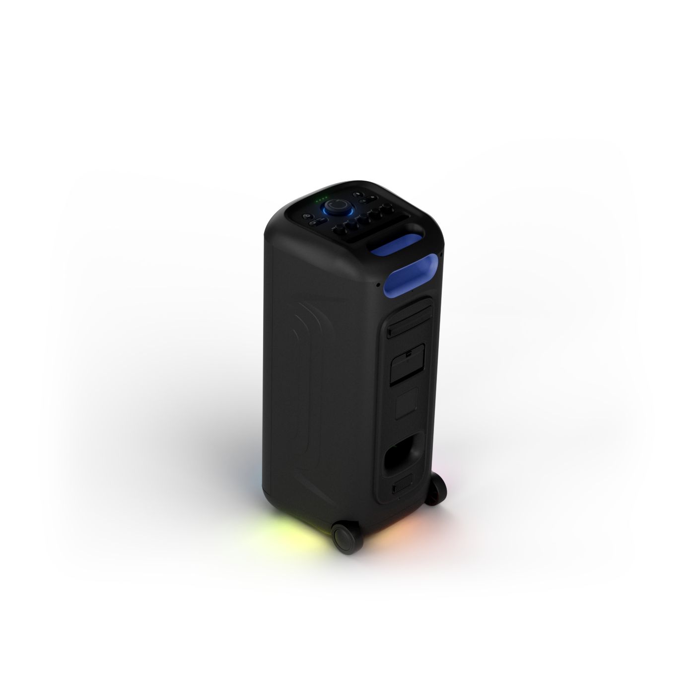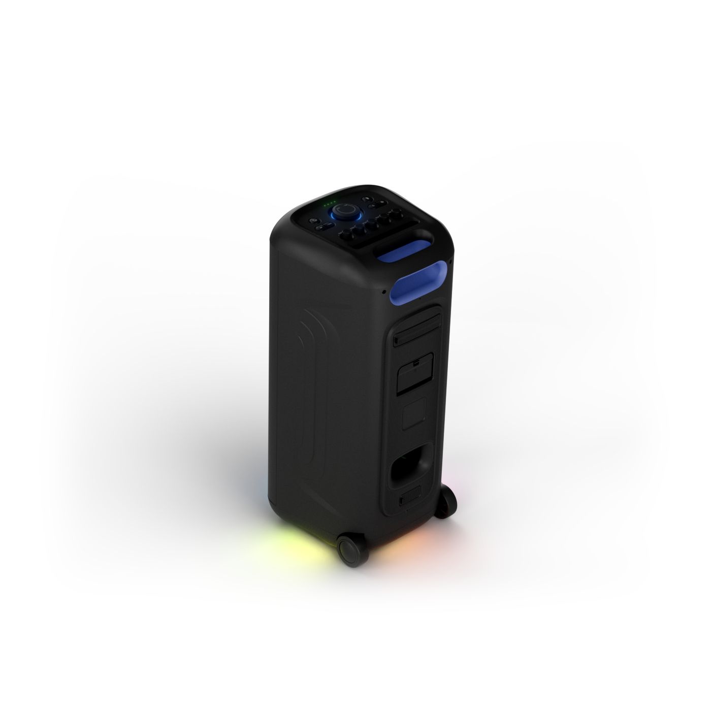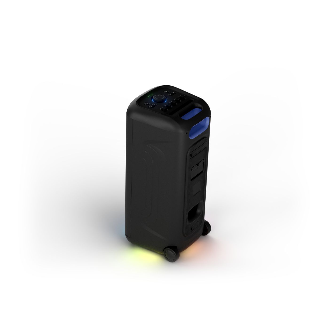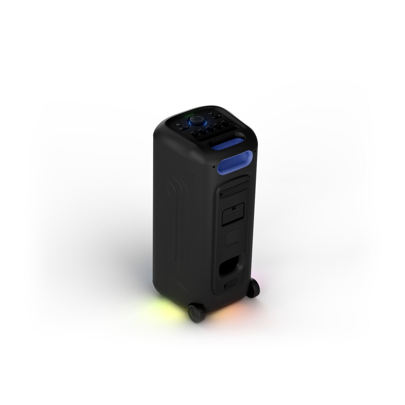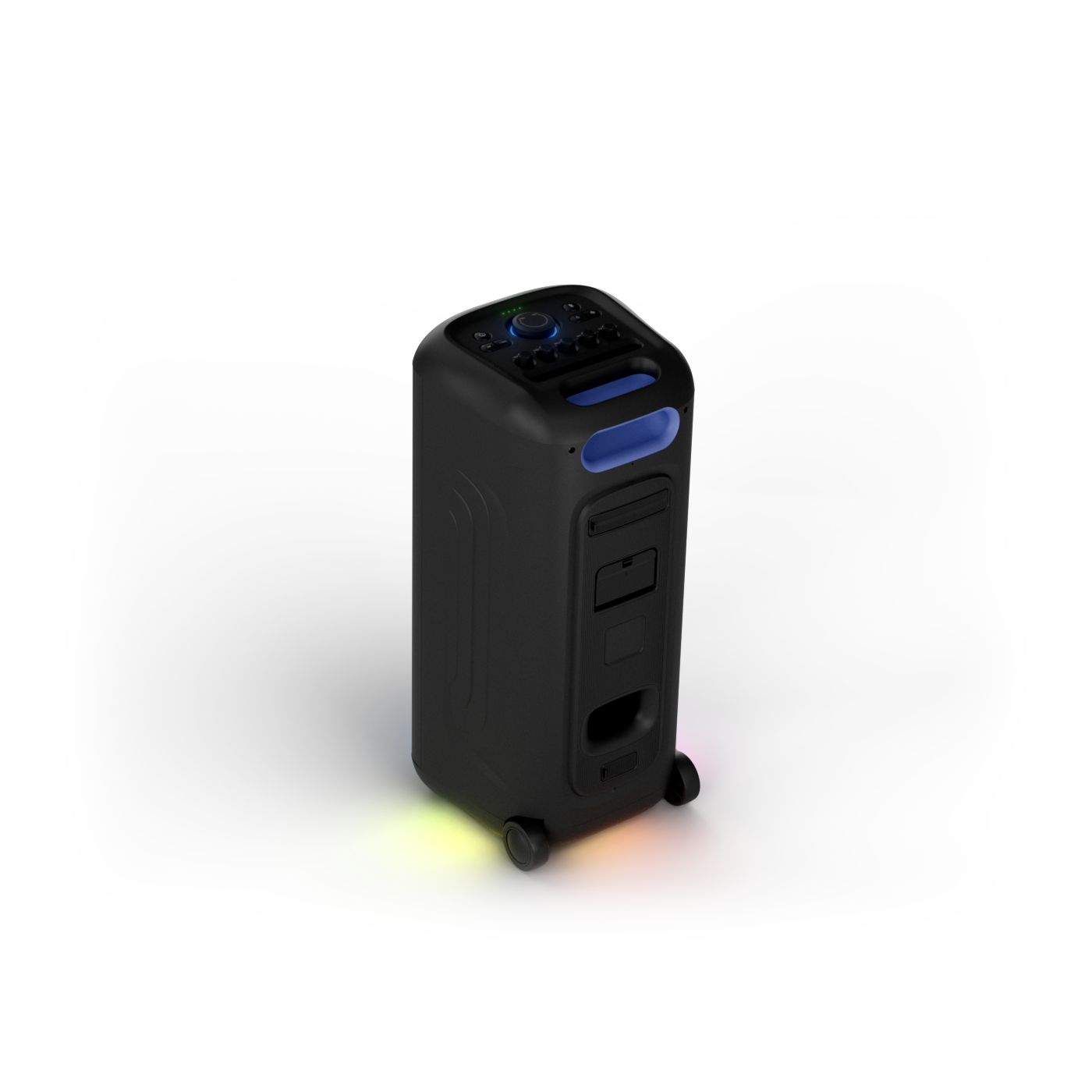 osvětlení má mnoho režimů. Svítí I Dole Vše se dá vypnout.+Nastavení dvou mikrofonu a kytary.A ještě zvlášť extra pro basy. (Extra bass). Velké plus je i vyměnitelná baterie. Kolečka kvalitní pevné. Bluetooth po celém bytě bez problémů. Zvuk v této cenovce bez konkurenční. 2 x 20 cm repro jde opravdu znát ( JBL120 165cm). Zvuk krásný čistý jak výšky tak basy. Do 80% volume naprosto čistý. Basy se dají i přidat extra tlačítkem Reproduktor hraje hutněji a (200watt ) než JBL p box120 za 7000. Silnější výkon a větší reproduktory jdou znát. V této cenové kategorii nejlepší. Philips je přece jen značka s dlouholetou tradicí. Stereo. veškerá elektronika vždy kvalitní. Sám mám stereo 2x50 watt Philips už 10let bez problémů. Po JBL party box 120 je tento Philips nejlepší volba. Zkoušel jsem LG v této cenové kategorii.do 5000 LG X-boom XL 5s srovnatelné zvukově ale horší osvětlení led, baterie nejde vyměnit, stará verze Bluetooth. Celkově jde znát že je LG už 4 roky