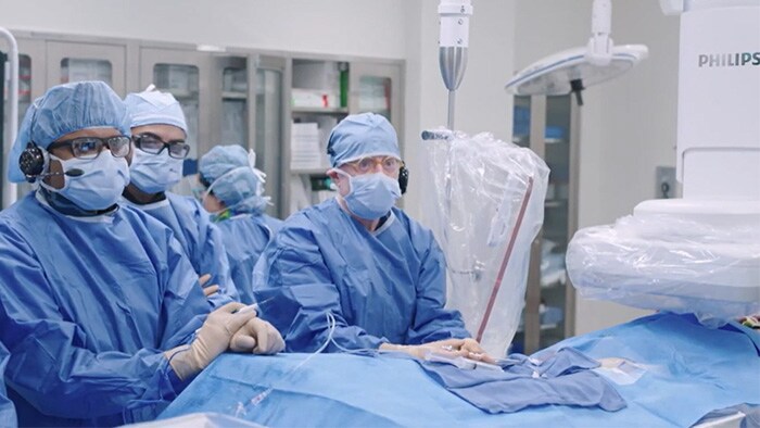 The multidisciplinary teams from Hackensack University Medical Center benefit from the Philips Hybrid OR for cardiac interventions. They experience it as the first imaging system that adapts to where you are instead of having to work around it. It can be positioned wherever you need it, intuitively controlled at table side by the touch screen module. Next to that, you can get patient records and lab results on the screen without breaking sterility.